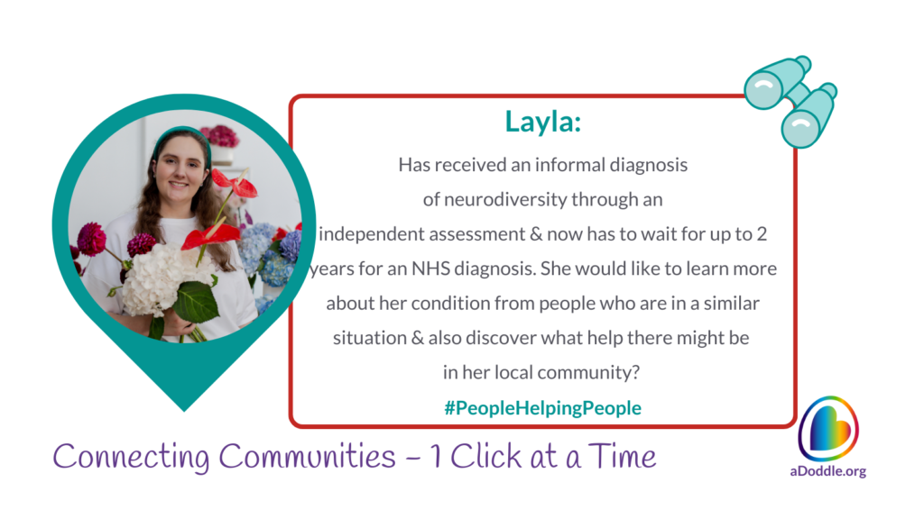 Layla has received an informal diagnosis of neurodiversity through an independent assessment and now has to wait for up to 2 years for an NHS diagnosis.